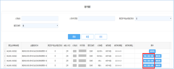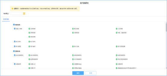点击“修改(查看)权限”按钮可查看授权人员授权信息,对授权人员有效期限以及授权功能模块进行修改,如图: