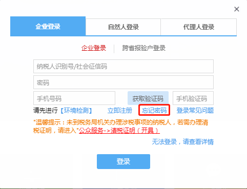 点击界面“忘记密码”按钮,系统跳转至忘记密码界面;