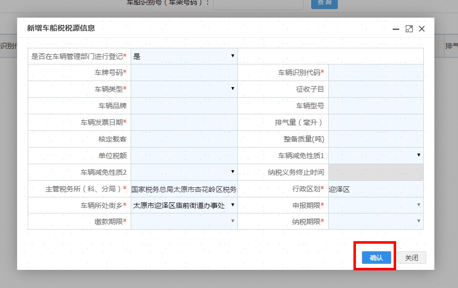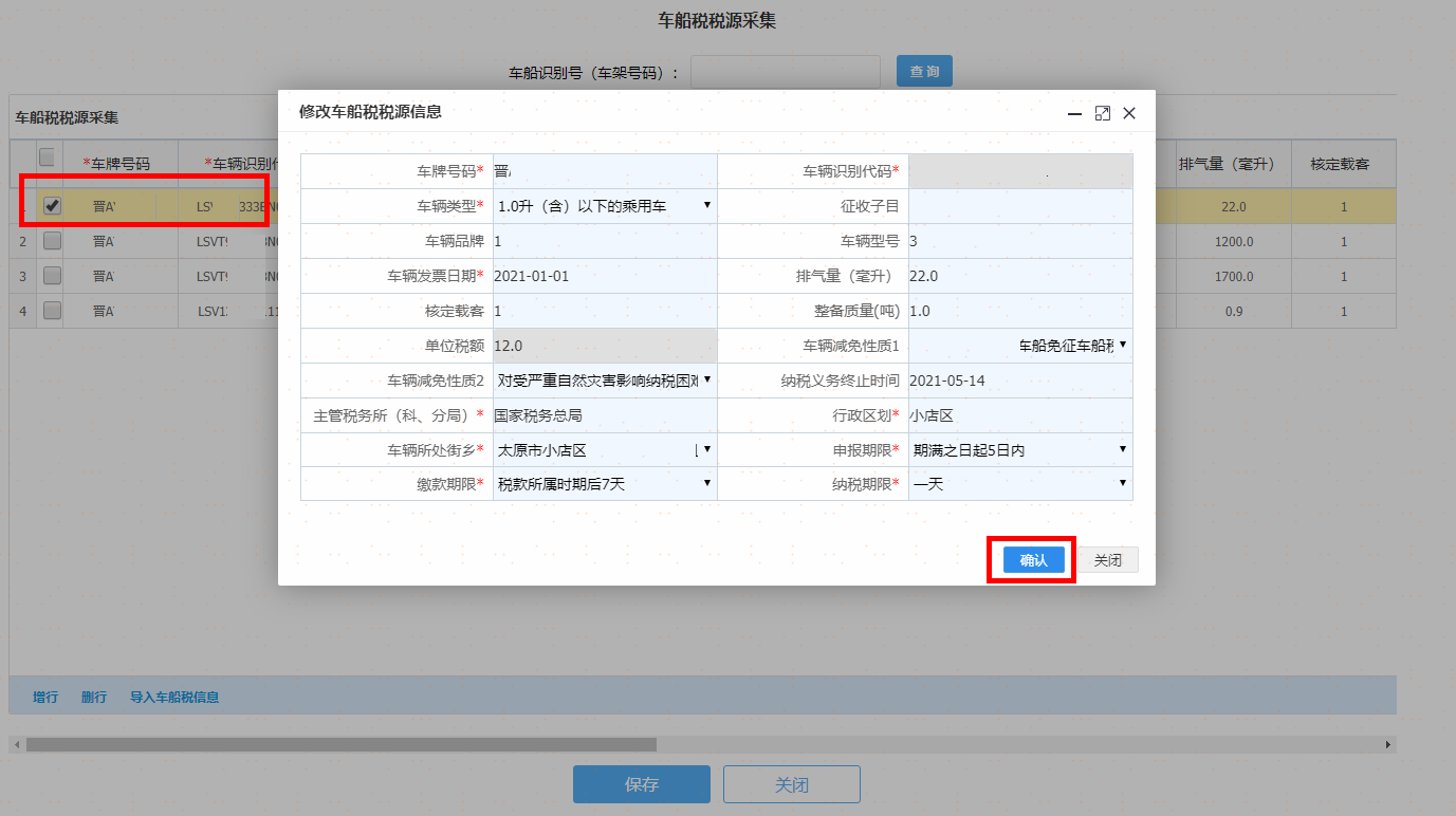 如您已进行车船税税源信息采集,需要修改,双击所需修改的税源信息可对已经采集的税源信息进行修改,修改完成后点击确认按钮完成更正。