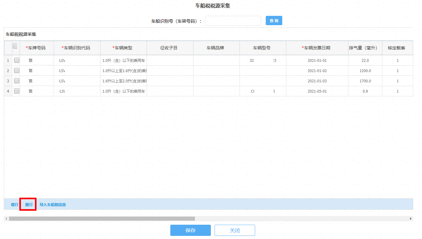 选中需要删除的税源信息后,点击删行按钮可删除此税源信息