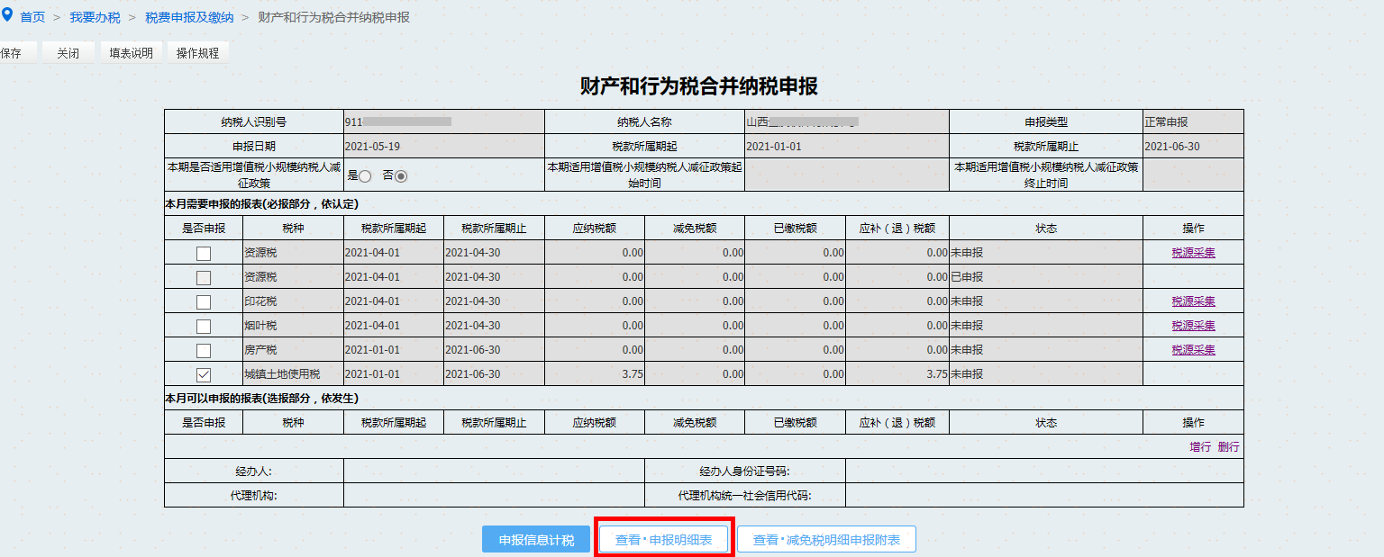 点击【查看·申报明细表】可查看申报明细信息。
