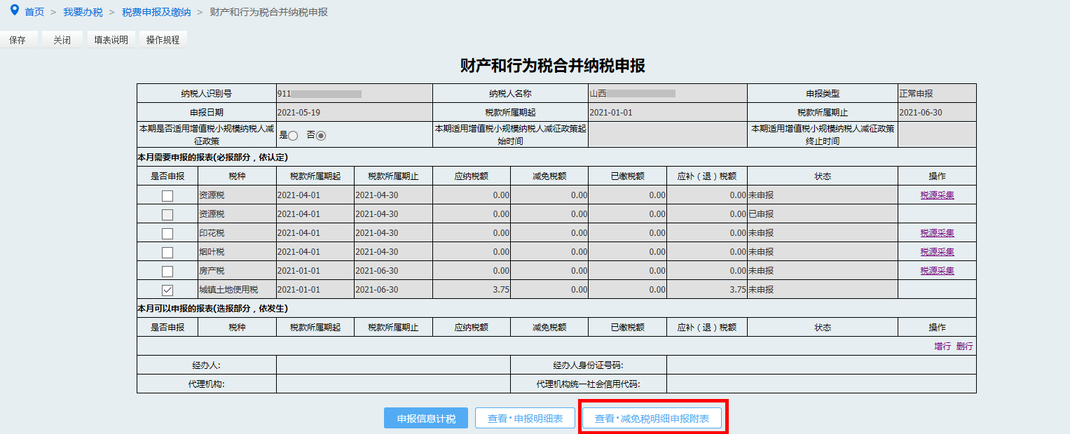 点击【查看·减免税明细申报附表】可查看减免明细信息。