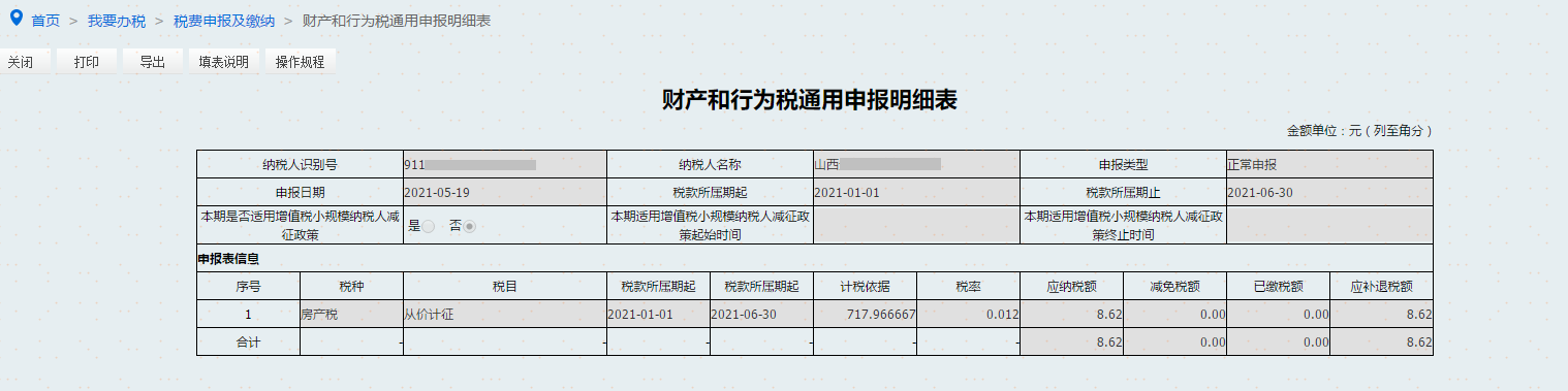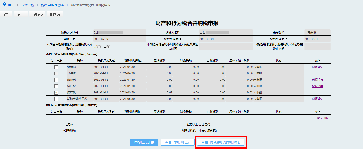 点击【查看·减免税明细申报附表】可查看减免明细信息。