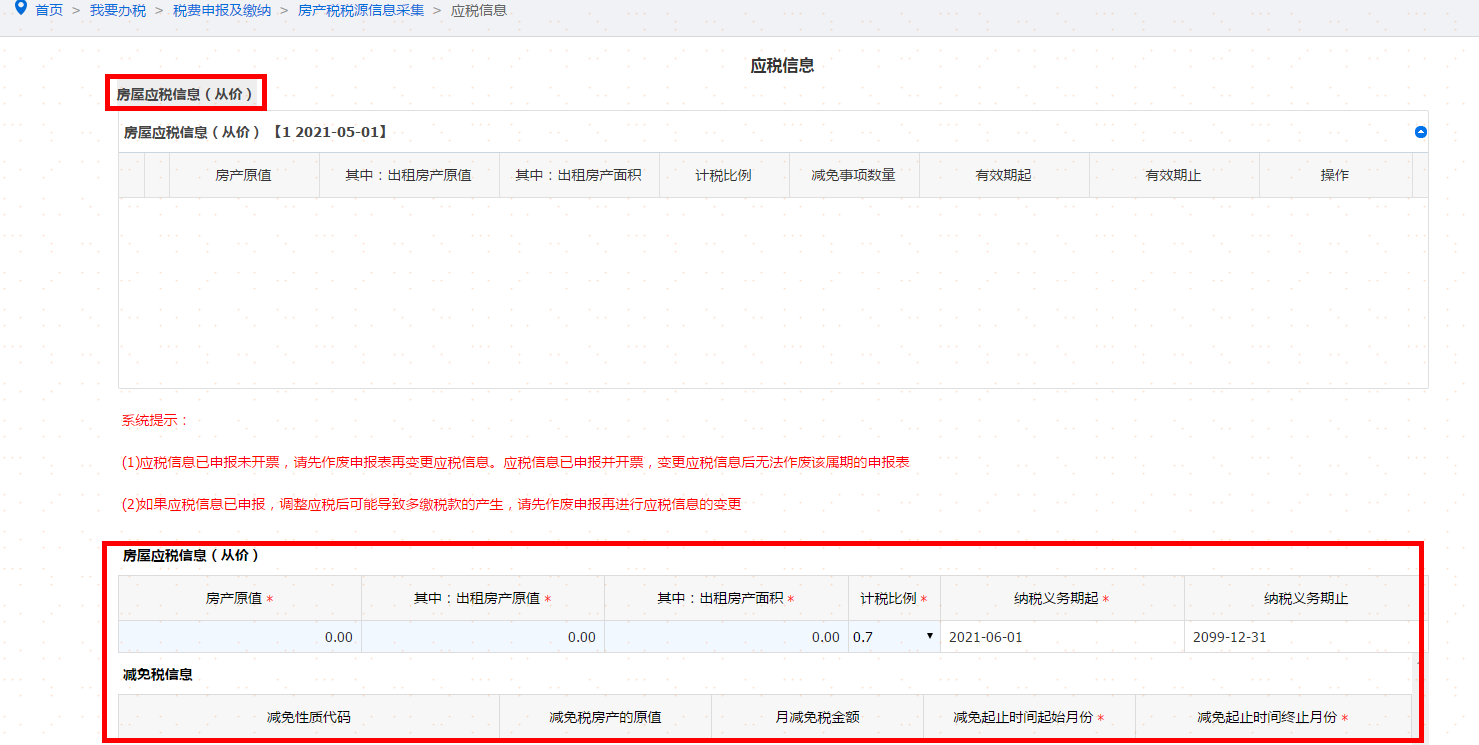 点击确定后自动跳转至房屋应税信息(从价)界面,如图。