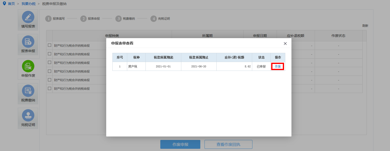 选择需要作废的申报表,点击【作废】按钮完成作废。