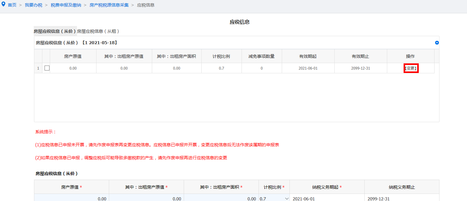 提示:变更应税信息时,必须录入【变更时间】,有效期起为变更日期的下月1日。