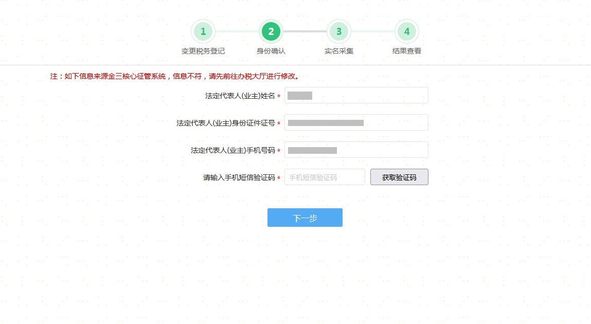 首页→〖我要办税〗→〖综合信息报告〗→〖身份信息报告〗→〖税务登记信息变更非“多证合一”“两证整合”纳税人〗