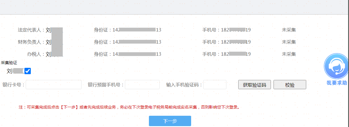 变更财务和办税人员信息需给法人手机号发送验证信息,进行验证后变更成功。