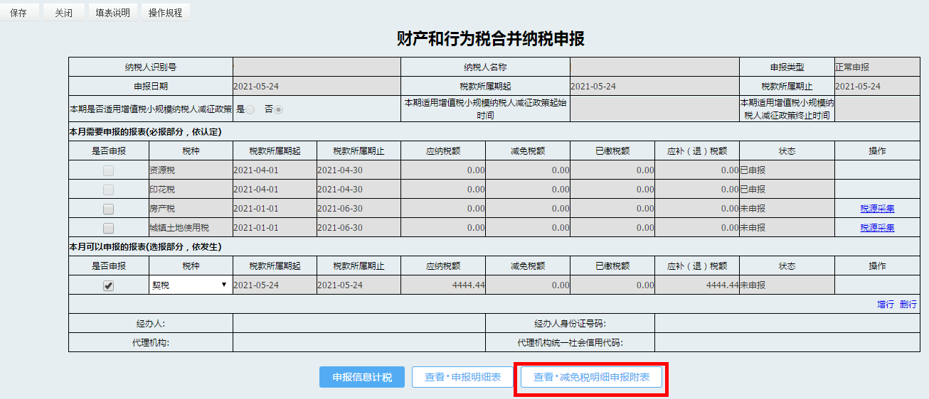 点击【查看·减免税明细申报附表】可查看减免明细信息。