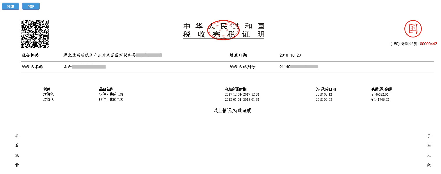 3.当税款入国库后,可开具完税证明(文书式),如图