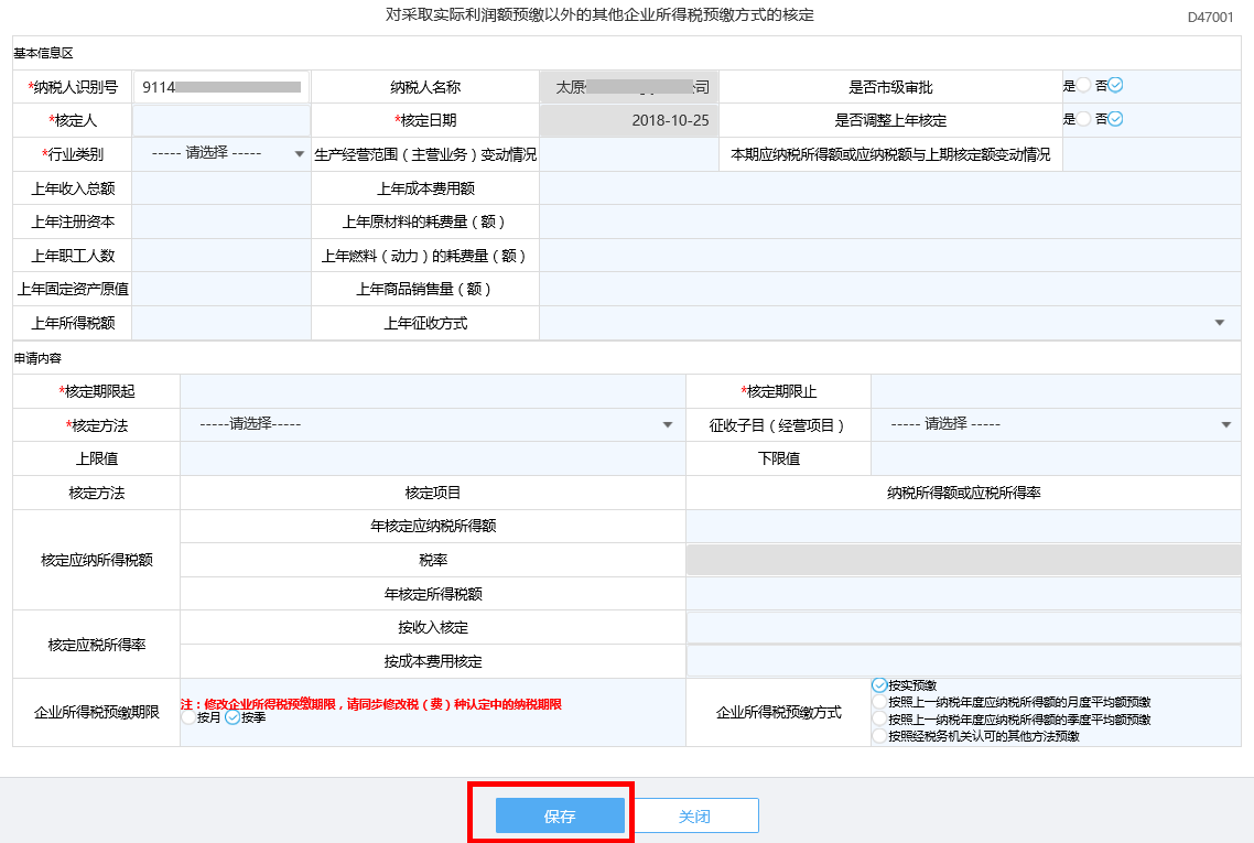 首页→〖我要办税〗→〖税务行政许可〗→〖对采取实际利润额预缴以外的其他企业所得税预缴方式的核定〗