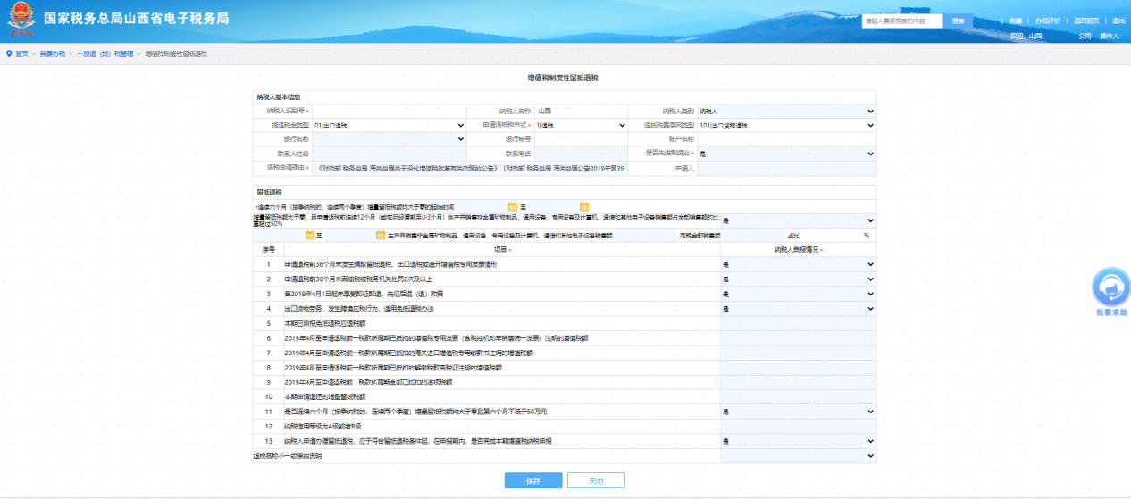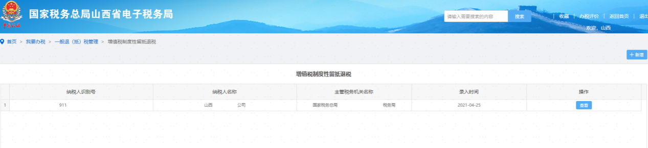 点击右上角【新增】后,可新增增值税制度性留抵退税电子资料,提交的申请传至金三待办,后续业务由税务人员审批。如下图: