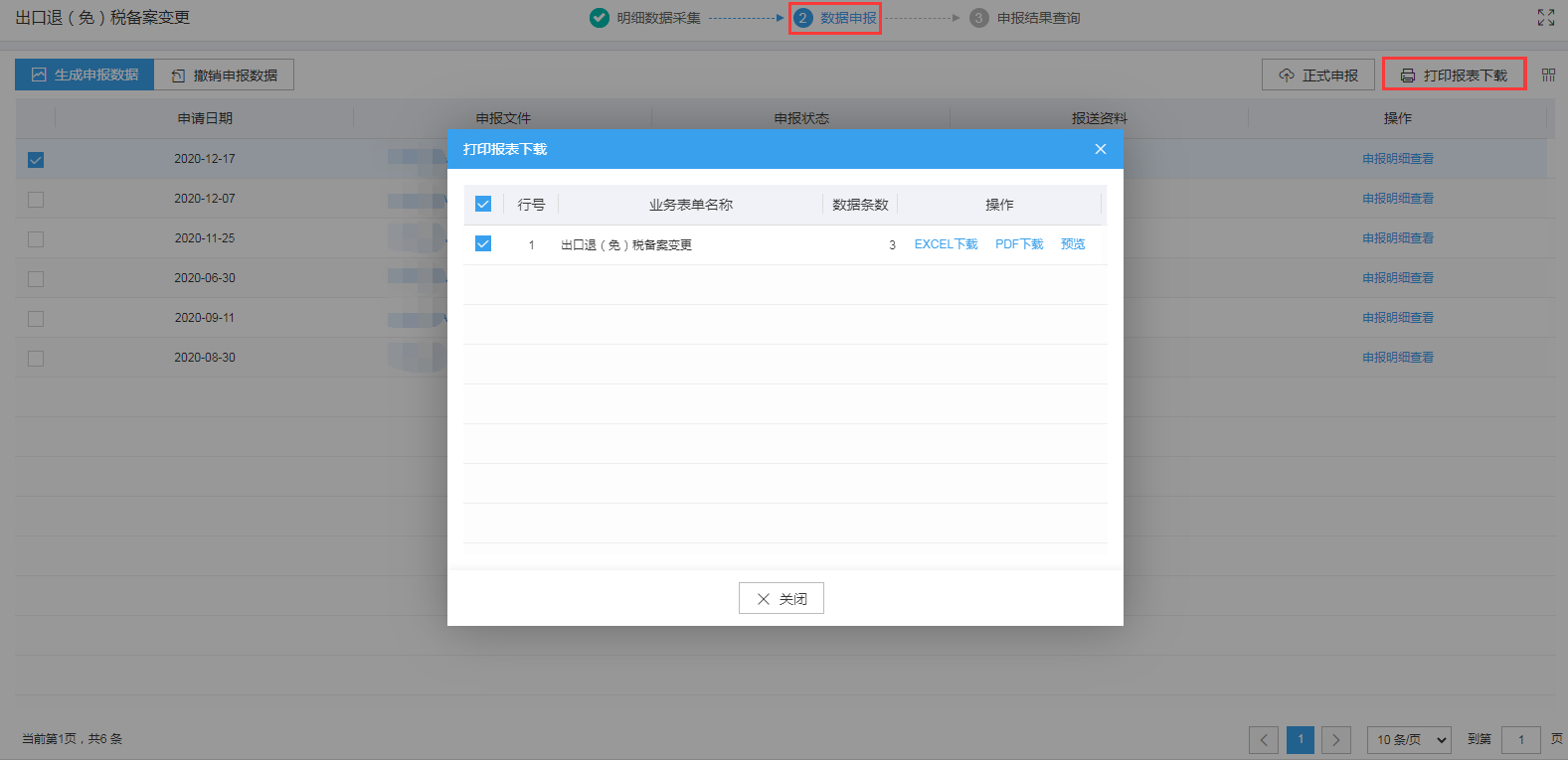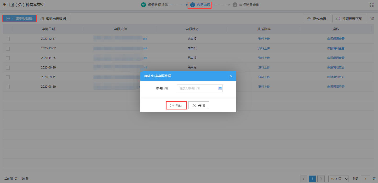 点击“申报明细查看”可查看已生成的申报数据明细。如图: