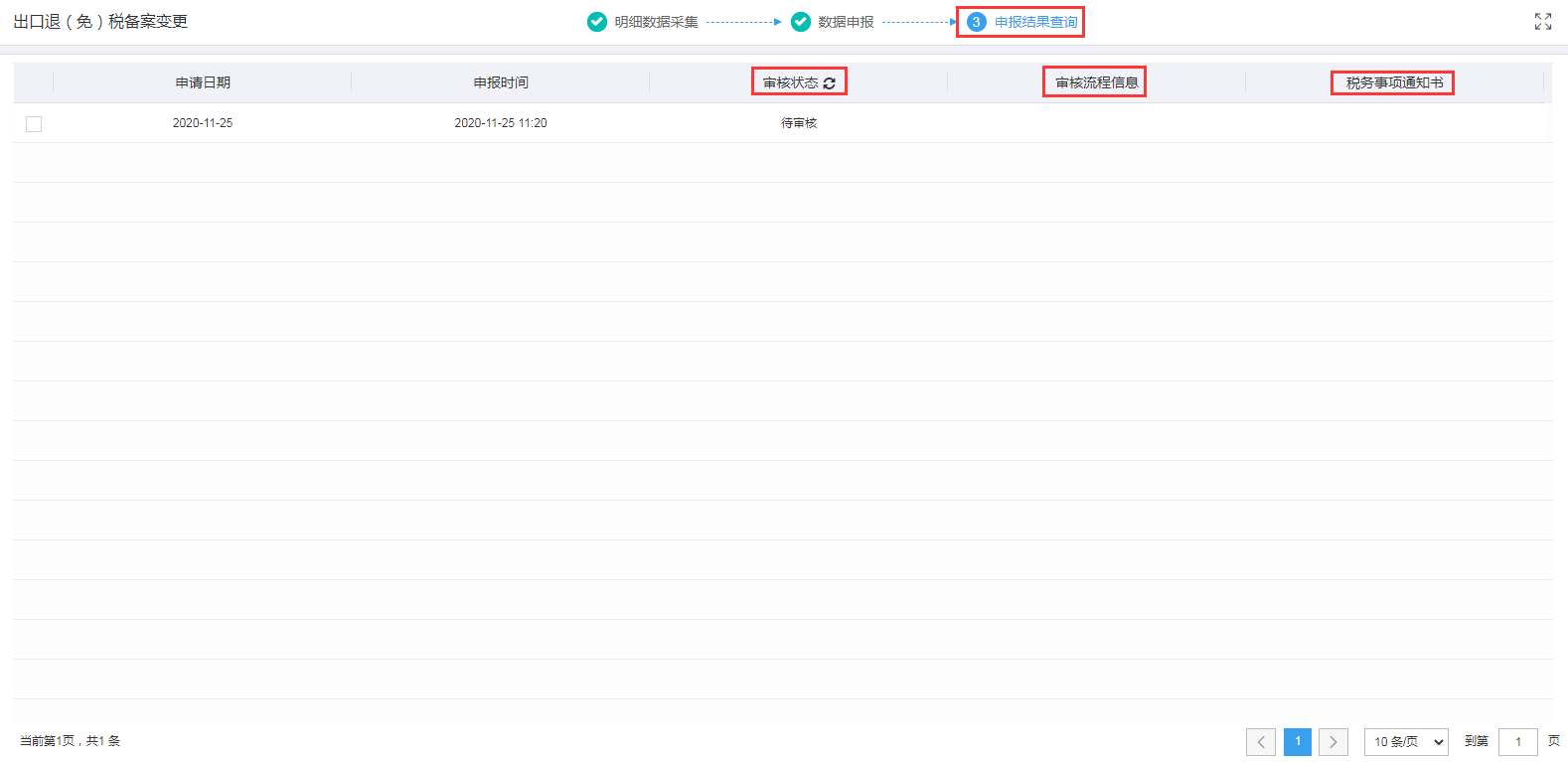 数据转为正式申报后,可在“申报结果查询”界面查看申报后的“审核状态”。审核状态显示为“审核成功”,则说明数据已经正式审核通过。税务事项通知书可查看税务机关受理结果。如图: