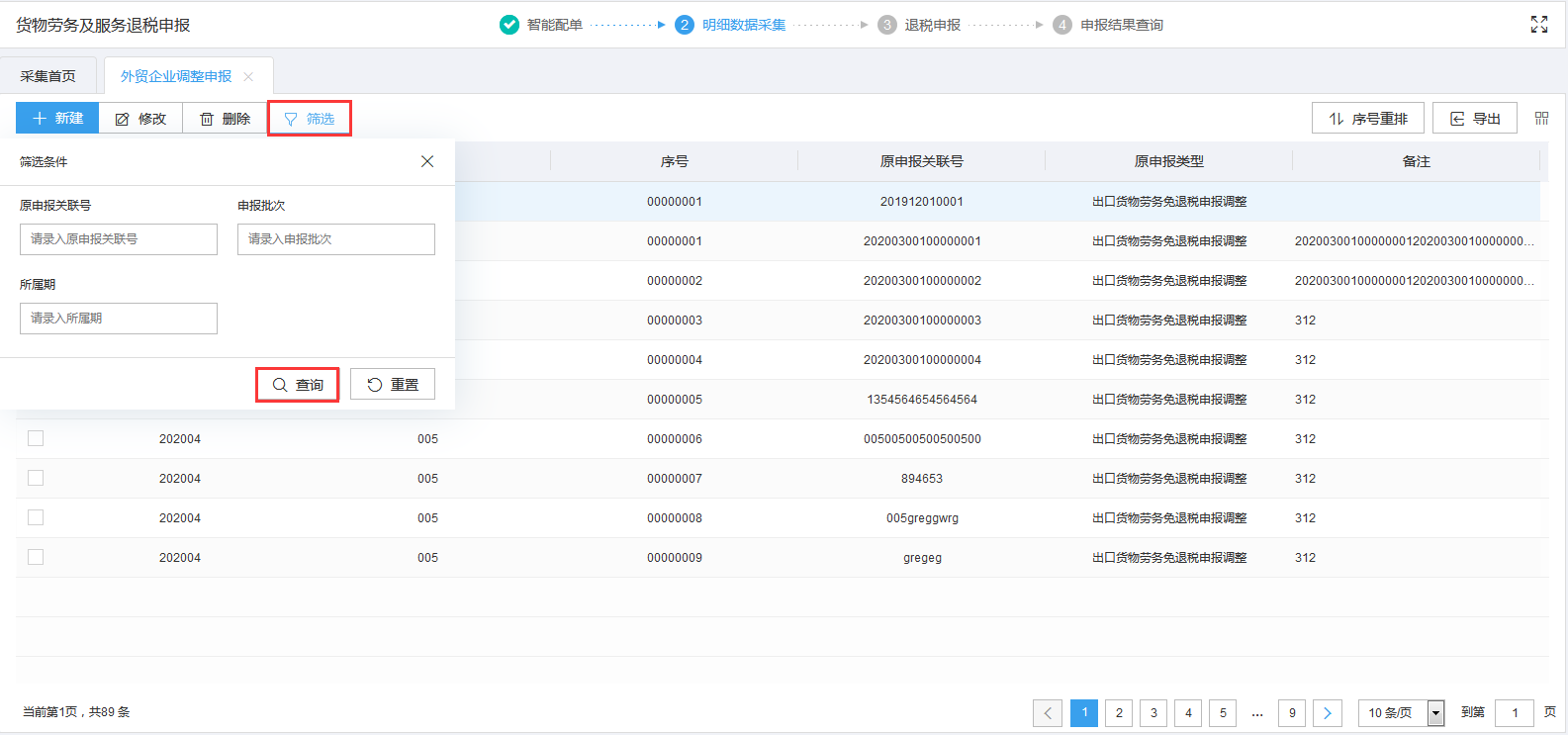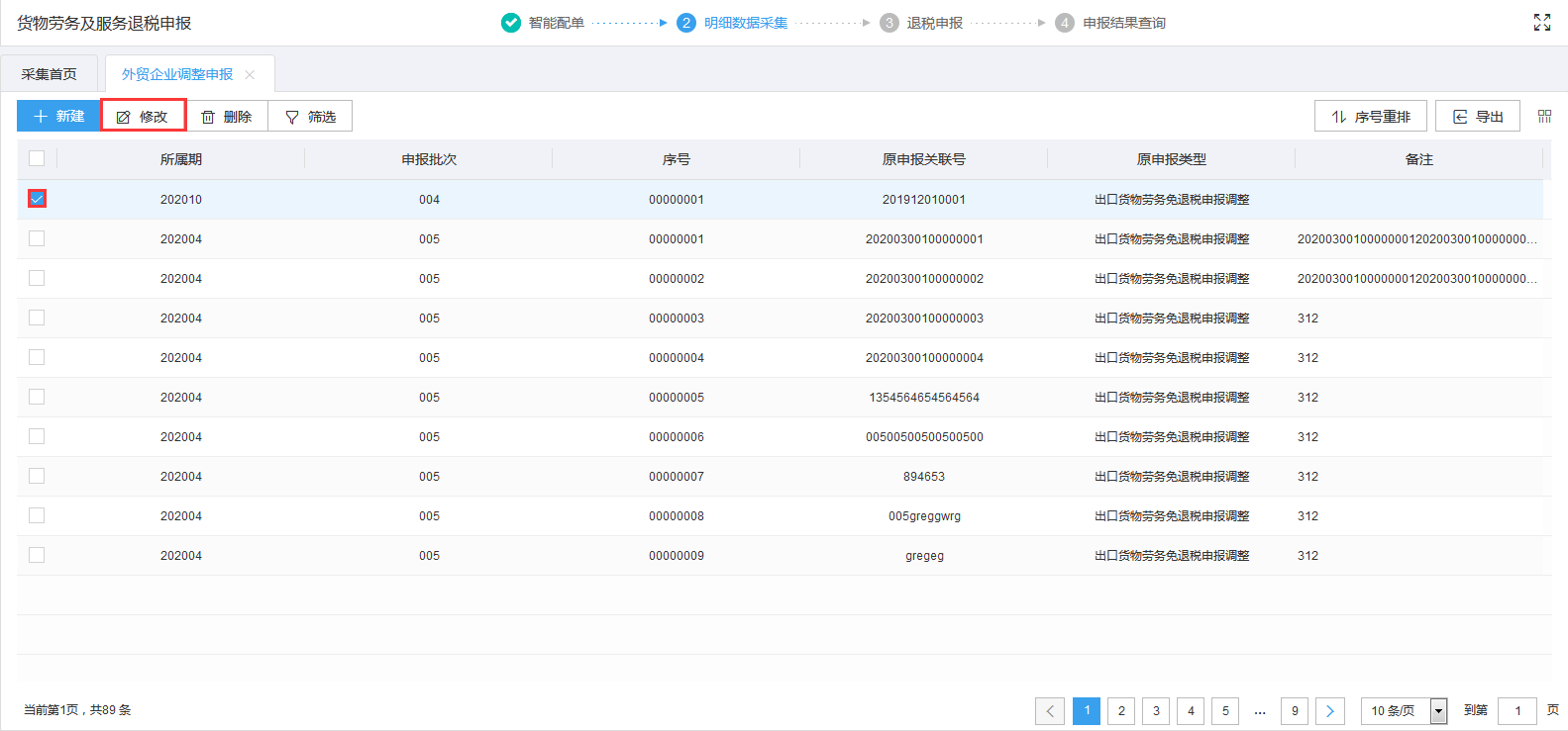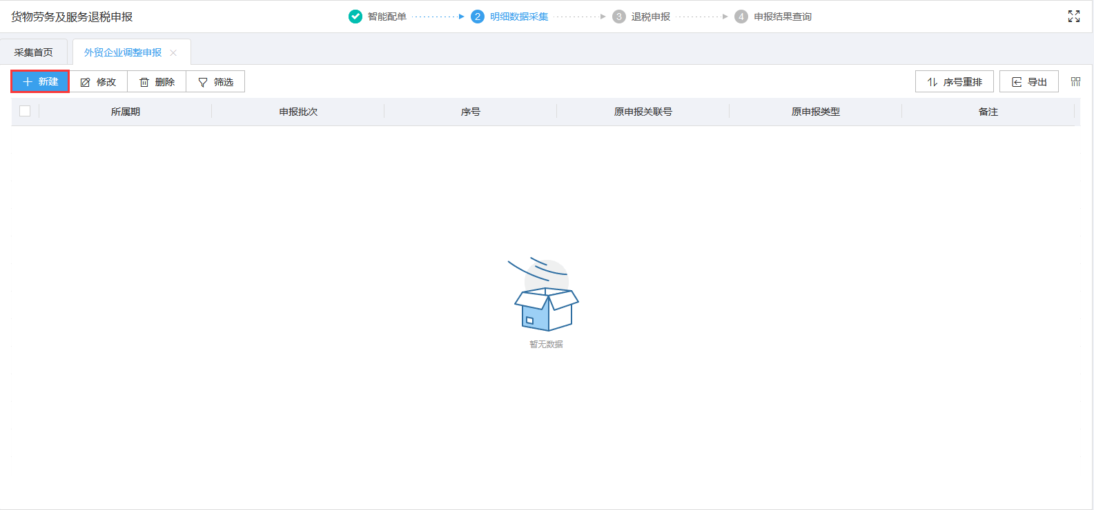 外贸企业有退税冲减业务的用户需要申报该表单,点击外贸企业调整申报进行数据采集。如图: