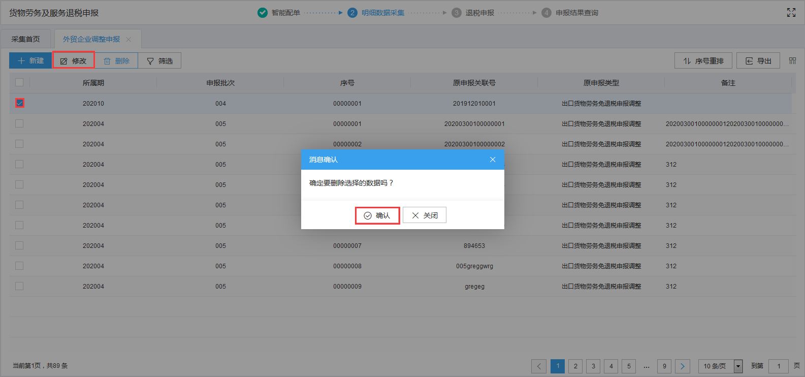 对需要删除的数据,可点击“删除”按钮,删除不需要的数据。如图: