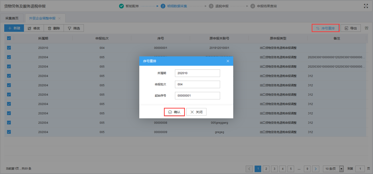 需要序号重排,可点击“序号重排”按钮,输入起始序号进行重新排序。如图: