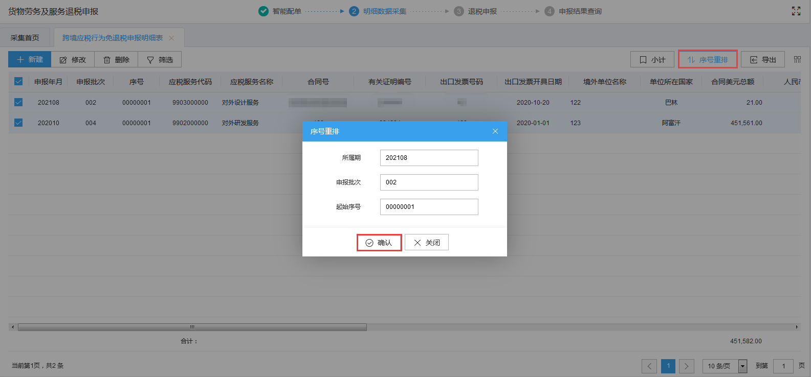 需要序号重排,可点击“序号重排”按钮,输入起始序号进行重新排序。如图: