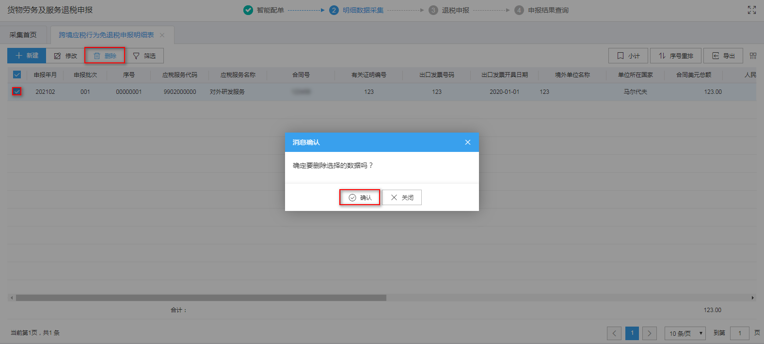 对需要删除的数据,可点击“删除”按钮,删除不需要的数据。如图: