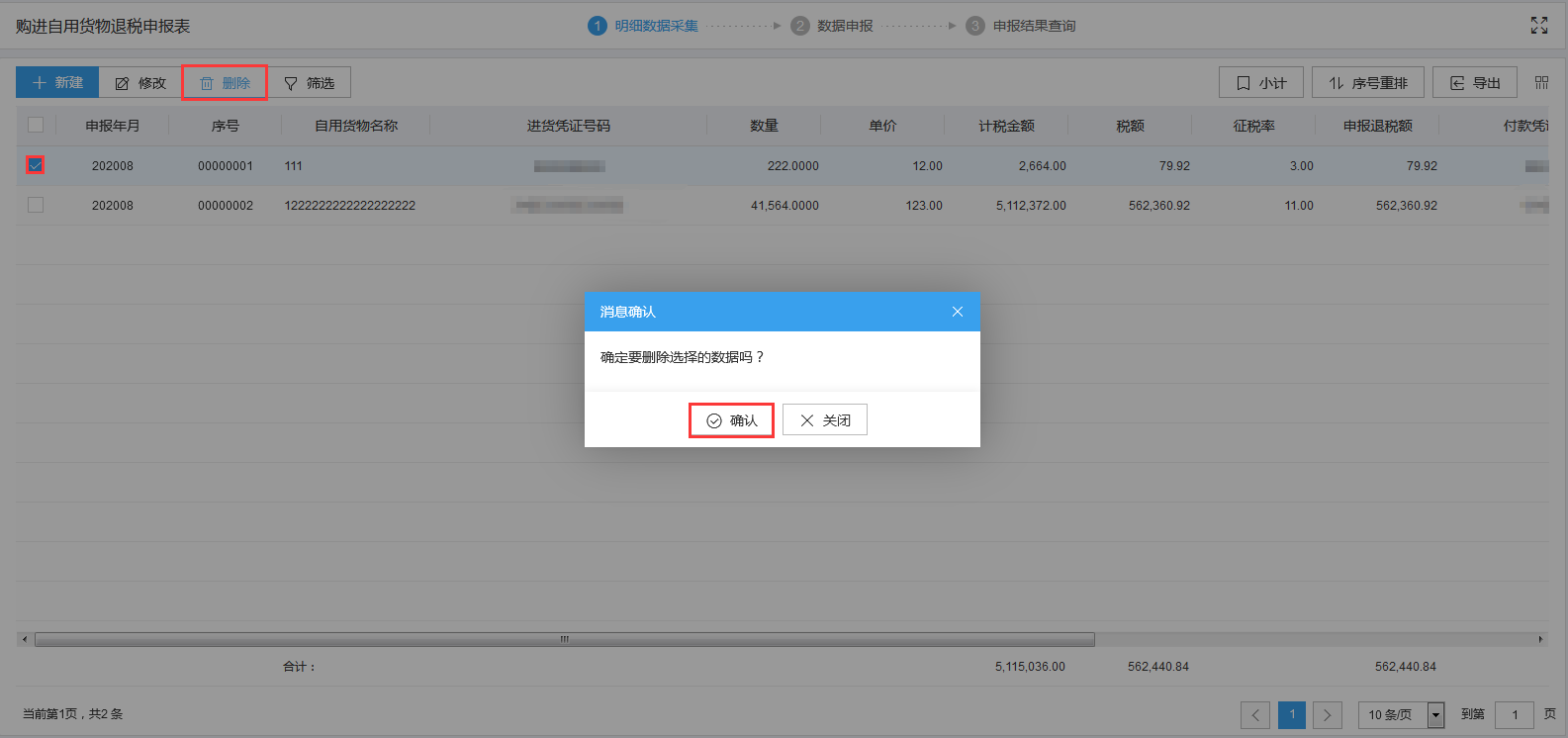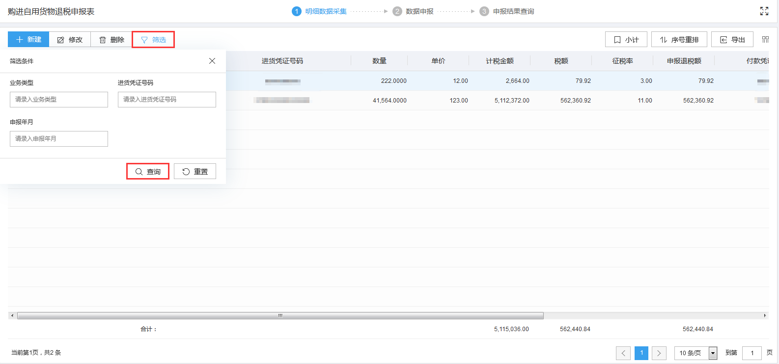 数据录入菜单可以对申报数据进行录入采集,同时可以利用筛选条件和功能按钮,对已录入数据进行增、删、改、查操作。