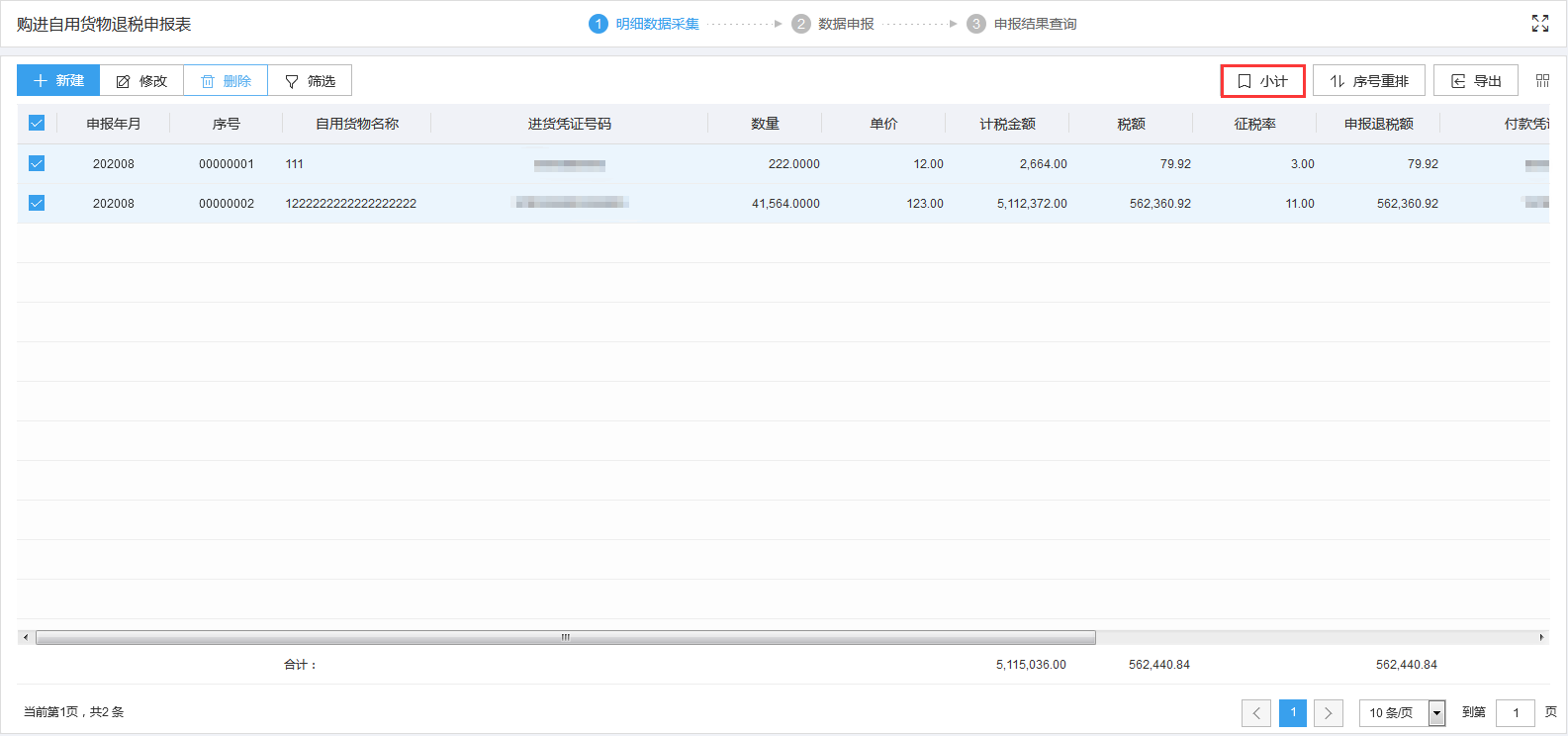 需要统计数据时,可点击“小计”按钮查看小计结果。如图: