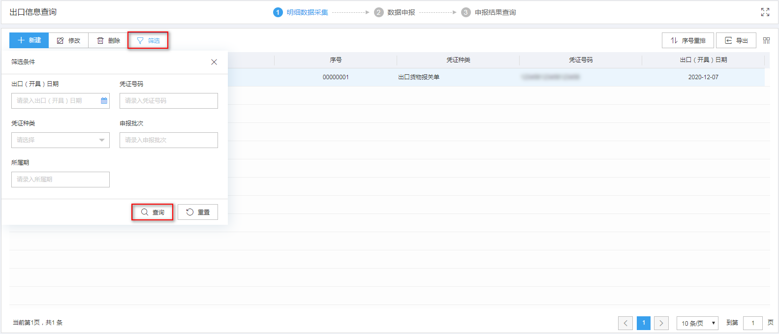 点击“筛选”按钮,输入筛选条件,点击“查询”按钮,可以进行筛选查询。如图: