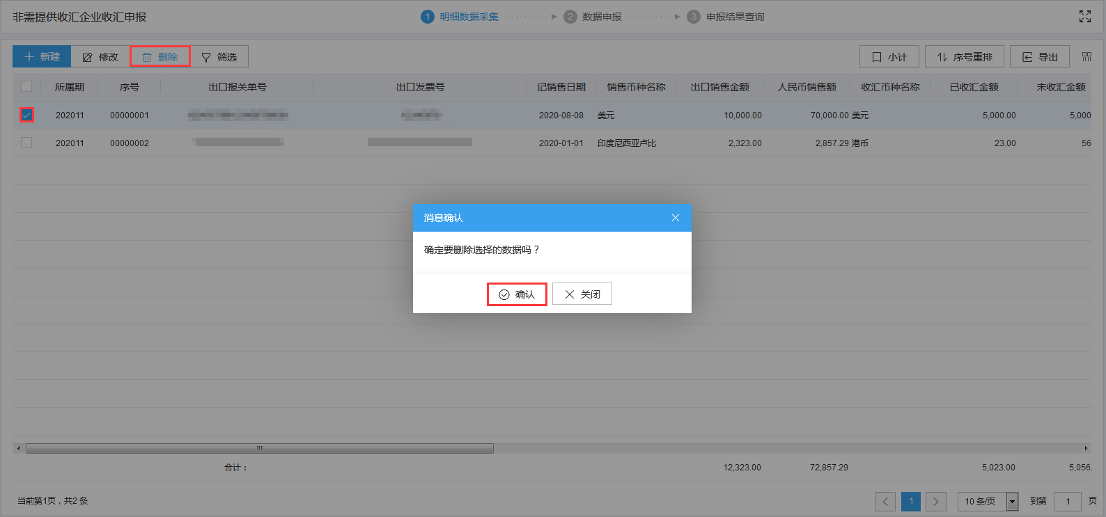 对需要删除的数据,可点击“删除”按钮,删除不需要的数据。如图: