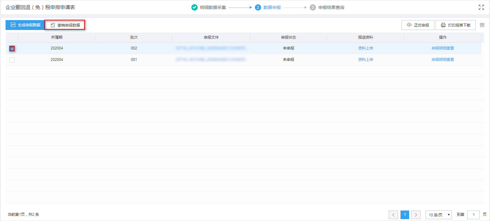 撤销申报数据