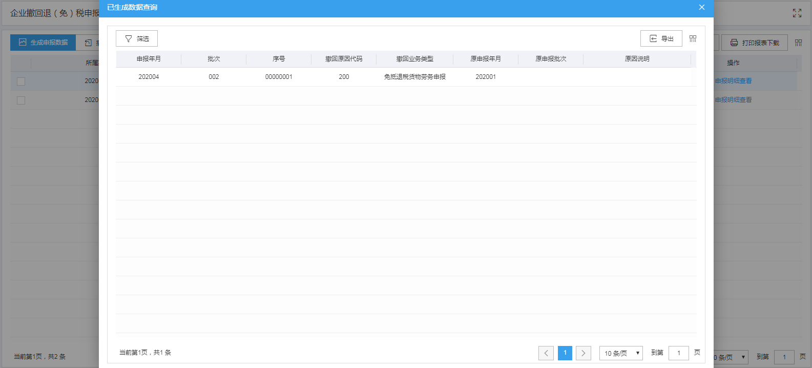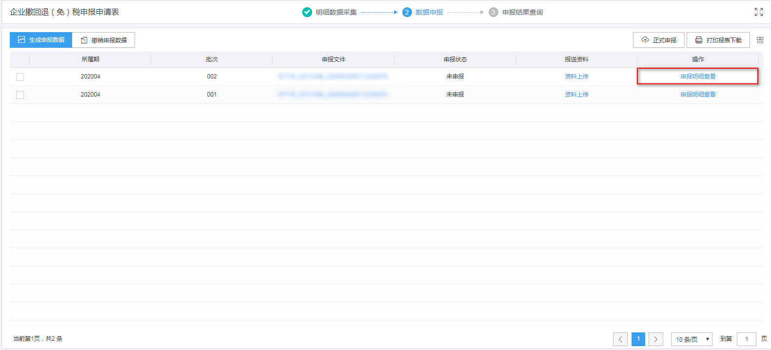 点击“申报明细查看”可查看已经生成的申报数据明细。如图: