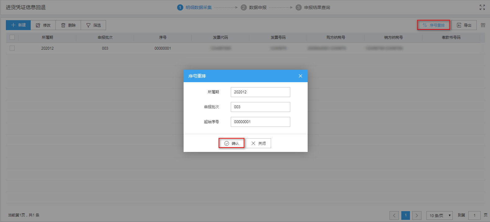 需要序号重排,可点击“序号重排”按钮,输入起始序号进行重新排序。如图: