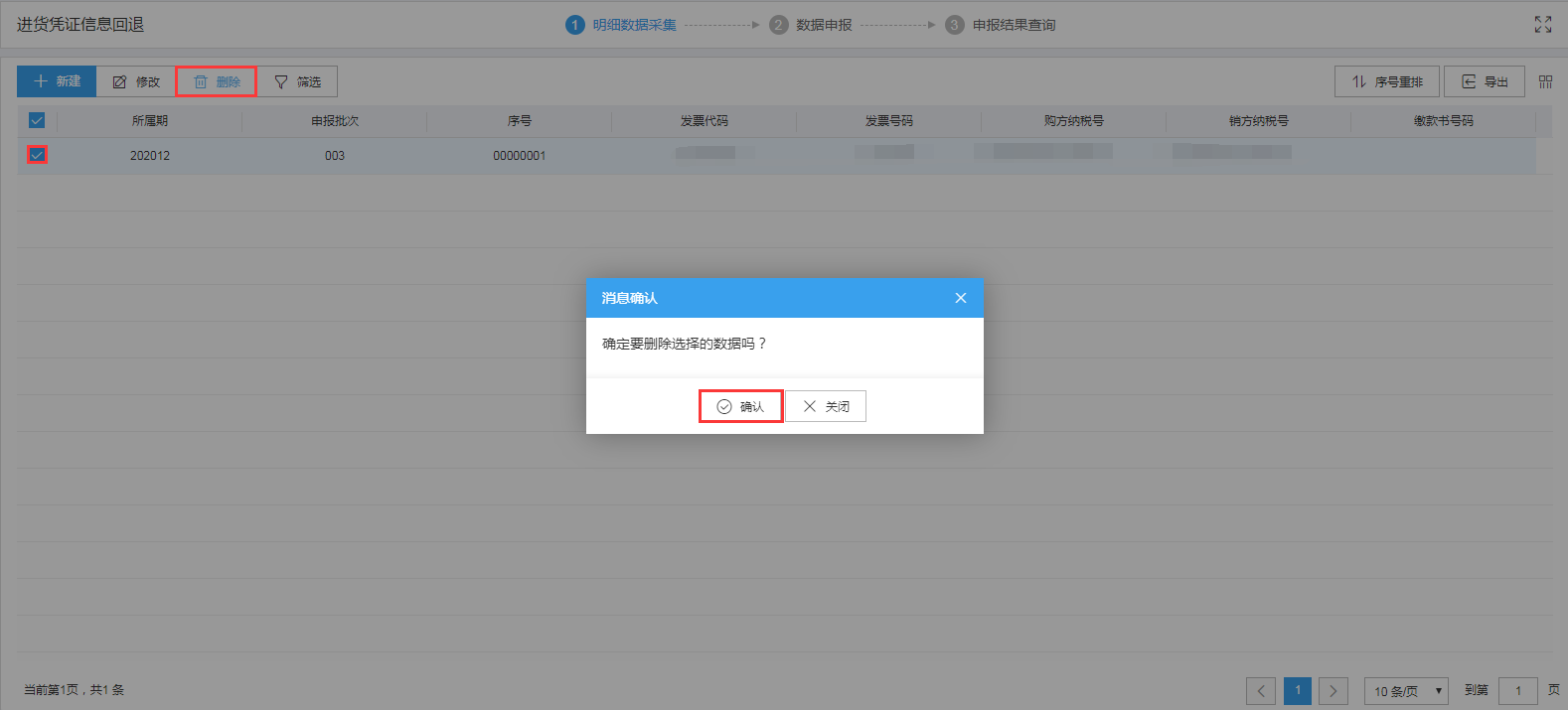 对需要删除的数据,可点击“删除”按钮,删除不需要的数据。如图: