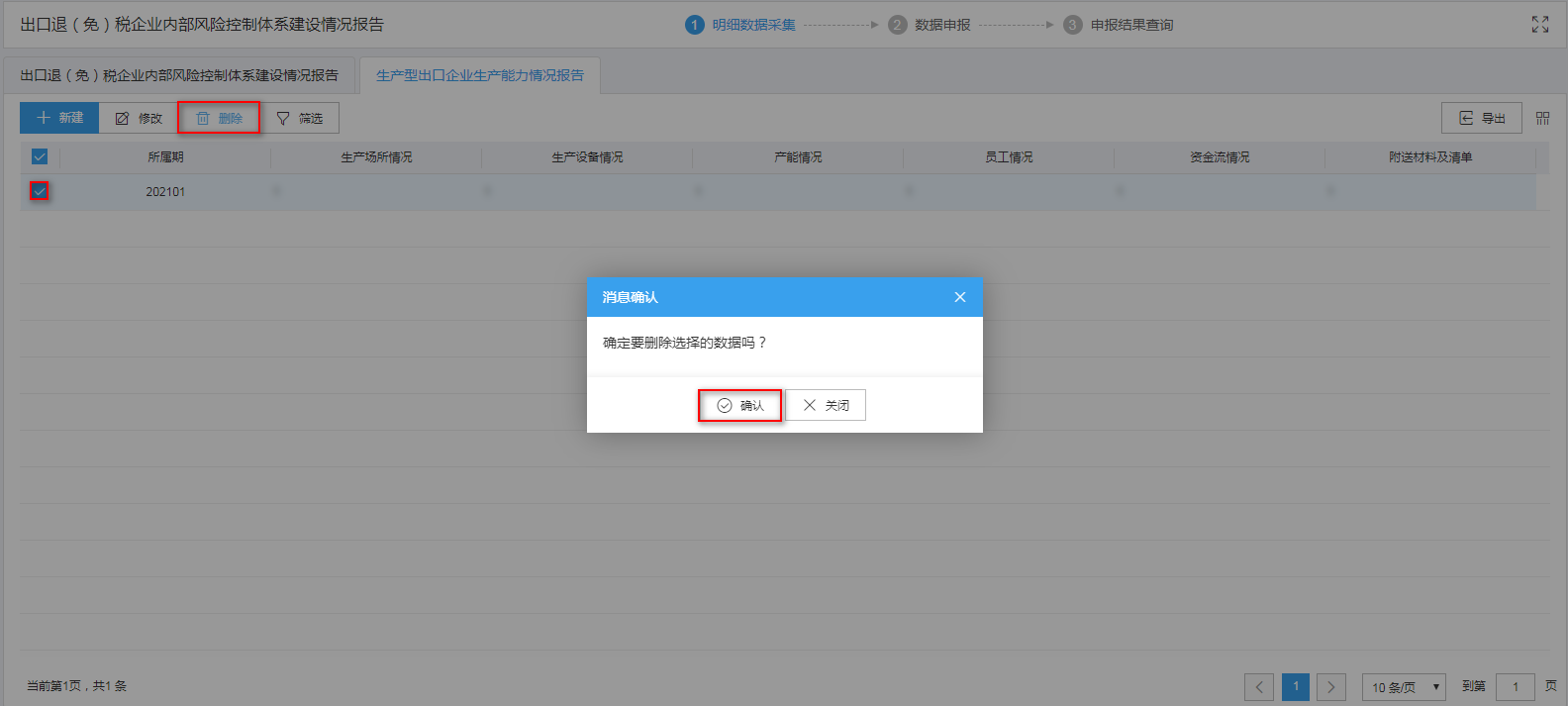 对需要删除的数据,可点击“删除”按钮,删除不需要的数据。如图: