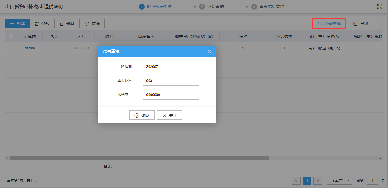 需要序号重排,可点击“序号重排”按钮,输入起始序号进行重新排序。如图: