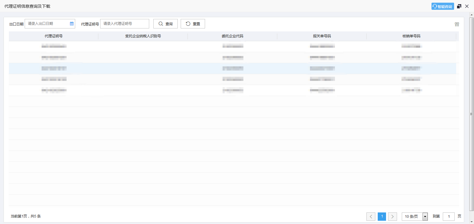 点击“筛选”按钮,输入查询条件,可查询相关代理证明信息。