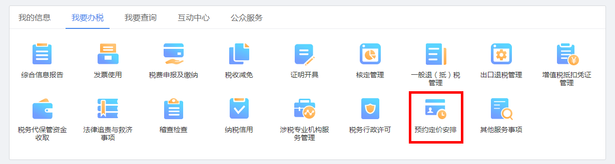 1.登录成功之后,首页点击【预约定价安排】业务按钮。