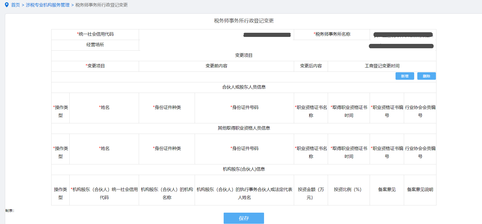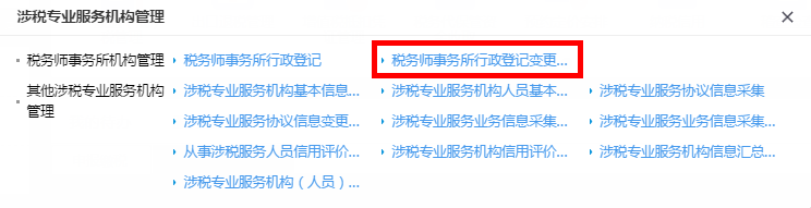 首页→〖我要办税〗→〖涉税专业机构服务管理〗→〖税务师事务所管理〗→〖变更〗