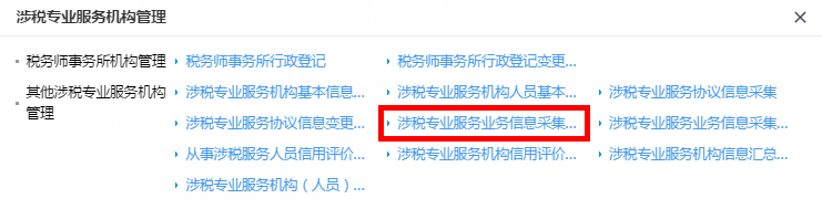 首页→〖我要办税〗→〖涉税专业机构服务管理〗→〖其他涉税专业服务机构管理〗→〖专项报告〗