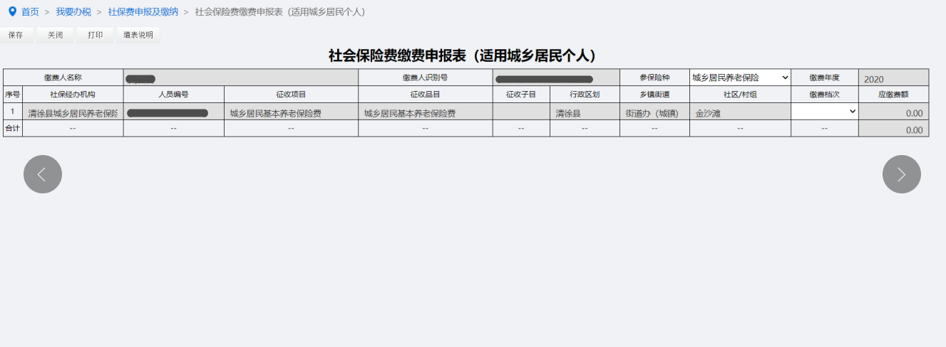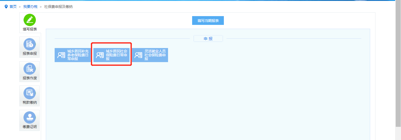 (2)进入“城乡居民社会保险费日常申报表”点击填写,如图: