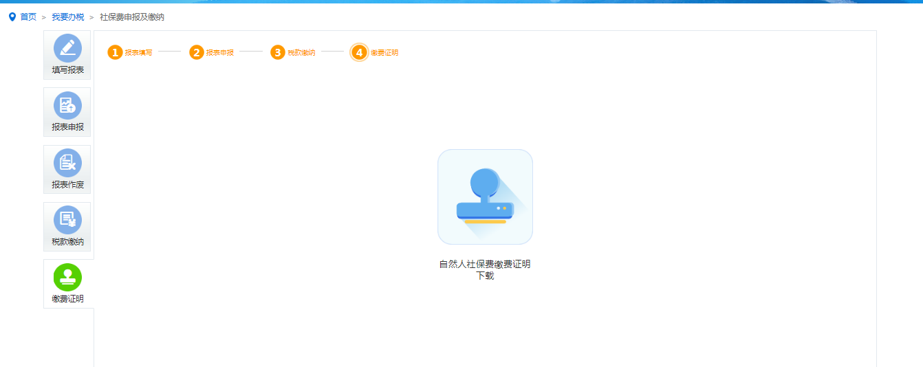 选择“缴费证明”标签,点击“自然人社保费缴费证明下载”模块,如图: