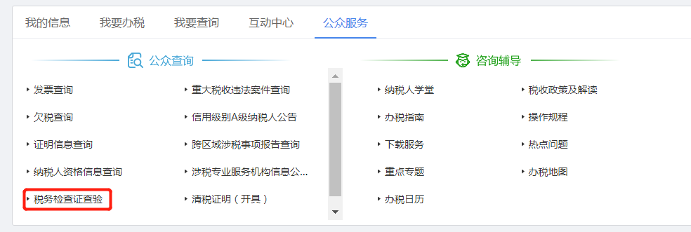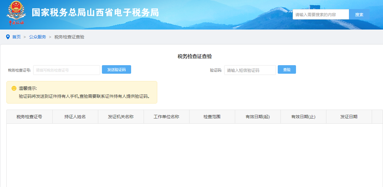 2.填写税务检查证号后给税务人员发送验证码,纳税人填写验证码后完成查验。