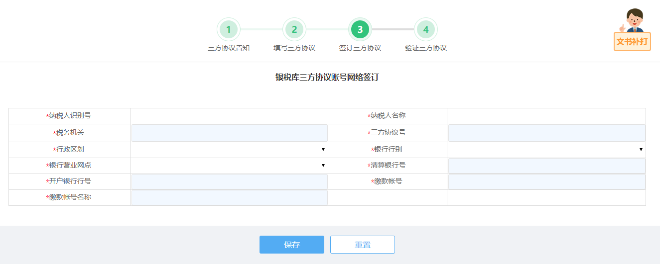 4.三方协议第三步,签订三方协议。系统自动带出纳税人基本信息,银行信息需手工录入。