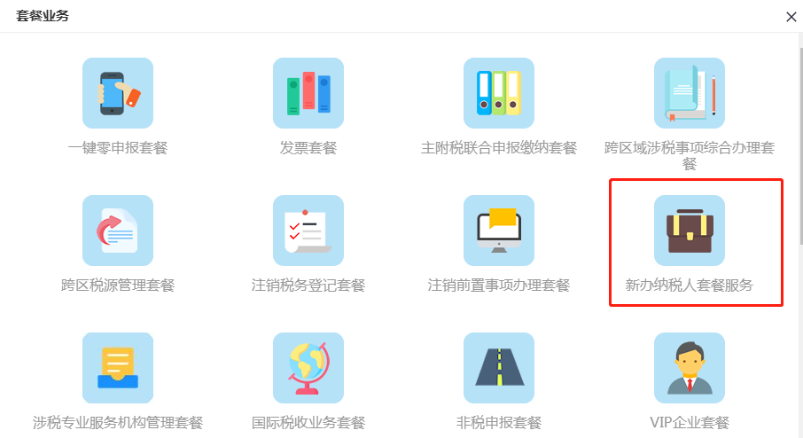 首页→〖套餐业务〗→〖新办纳税人业务〗