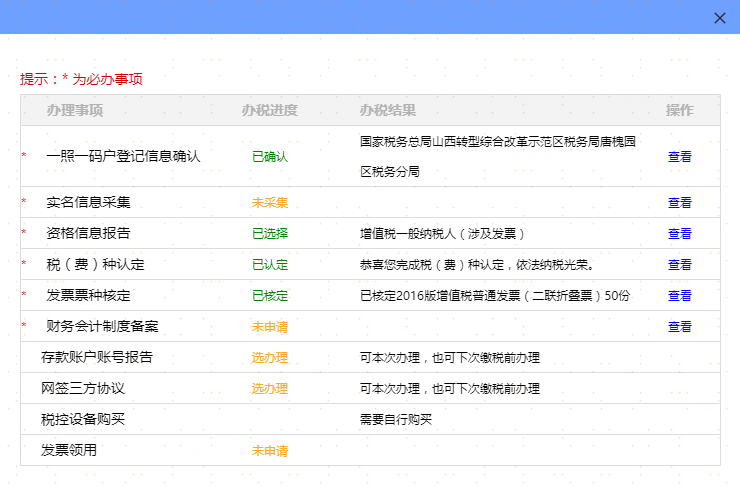 纳税人可以通过当前页面右上角“进度查询”查看办理情况,如图。
