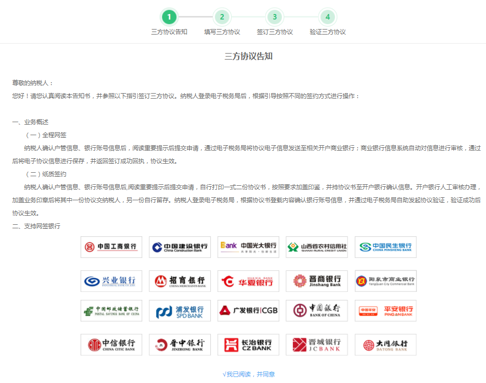 2.三方协议第一步,请纳税人阅读《三方协议告知书》。