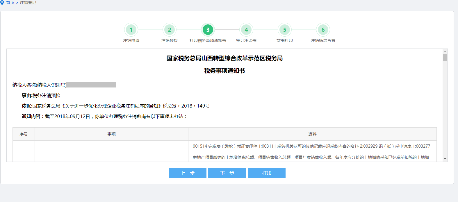 2.打印税务事项通知书