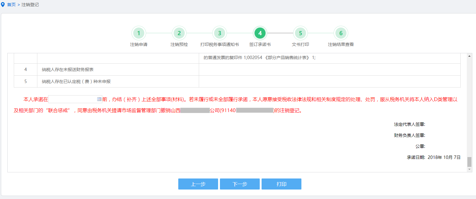 对符合即办条件但有未结事项的,纳税人可签署《<清税证明>承诺书》。点击“承诺”可填写承诺日期。