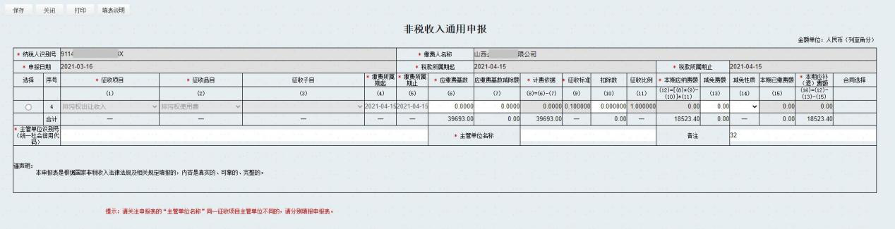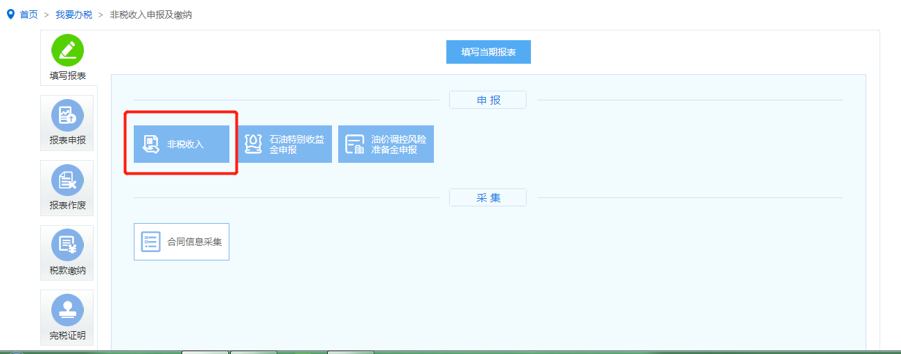 点击“非税收入”,进入申报表填写界面;