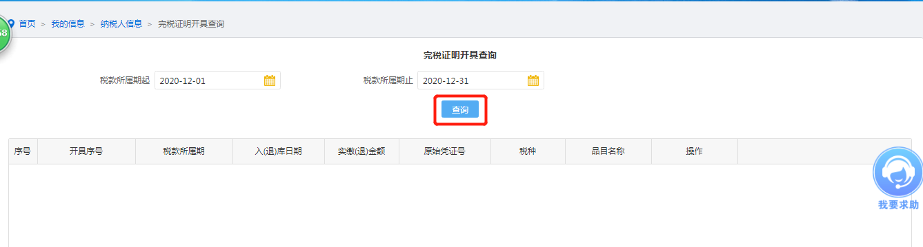 选择“税款所属期起”和“税款所属期止”点击“查询”,查找已经开具的完税证明,选择后,再次下载PDF版式文件打印税务完税证明即可。