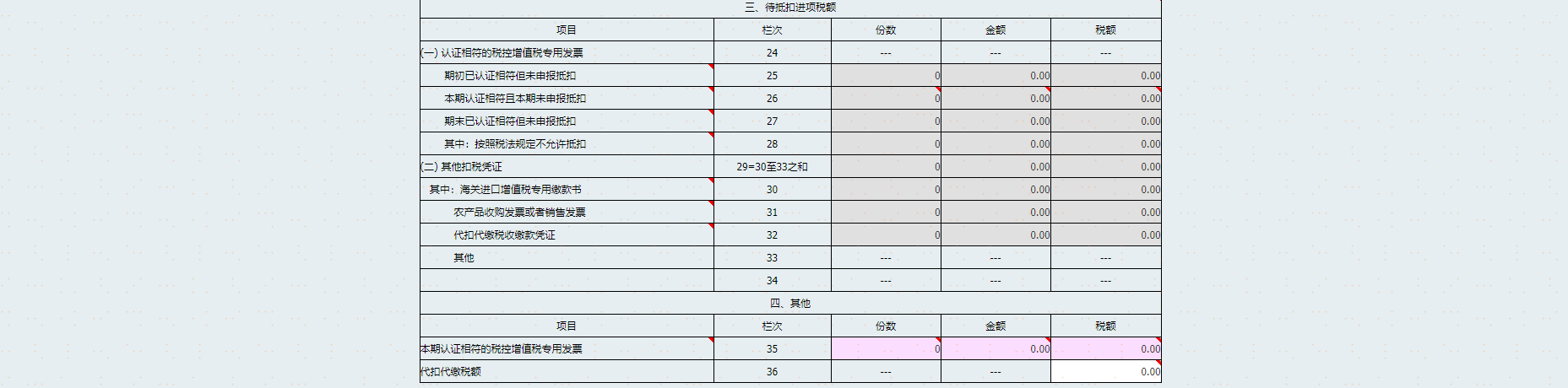 核实并修改电子税务局自动提取的本期认证增值税专用发票”的“份数”“金额”“税额”栏次数据。(电子税务局自动提取了对应所属期内认证增值税专用发票的份数、金额、税额)。