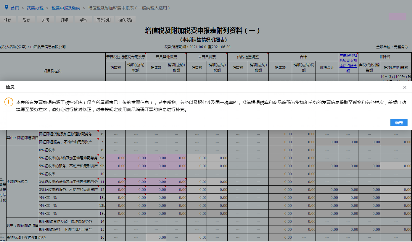 核实并修改电子税务局自动提取的专用发票、其他发票销售额及税额。(电子税务局自动提取了对应所属期内开具的增值税专用发票以及通过增值税发票新系统开具的普通发票的销售额和税额合计)。